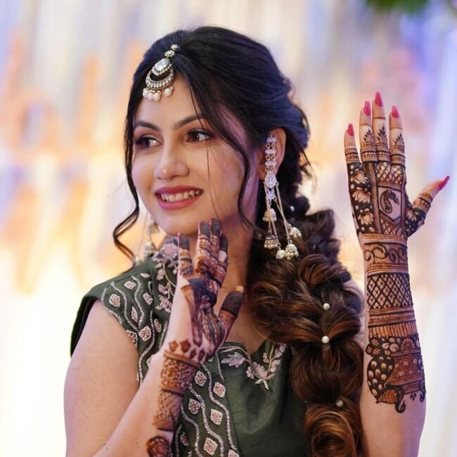 We are a professional bridal mehndi artist in Lucknow, known for elegant designs, fine detailing, and dark long-lasting mehndi color. We make every bride feel special on her big day.